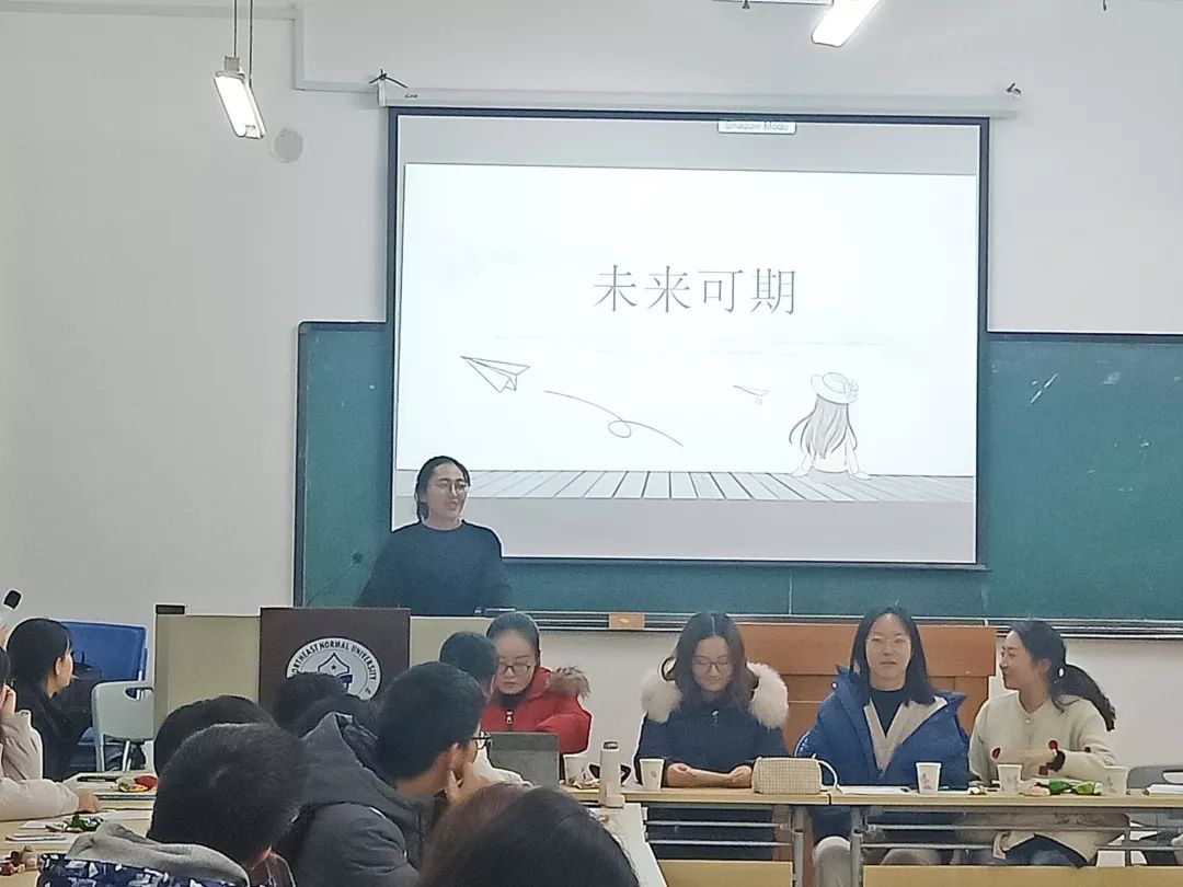 石若男学姐主要介绍了在之后的求职面试注意事项,并向思教专业的同学强调了教师技能及课本内容的重要性。她还提倡发挥团队的力量,鼓励同学们形成一起学习的好风气。