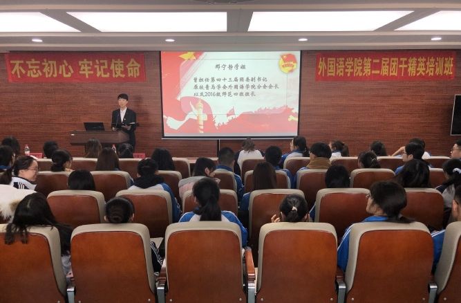 2019年11月16日8时20分,外国语学院团委于外院713厅举办了题为“不忘初心,牢记使命”的团干精英培训活动第一讲。出席此次活动的嘉宾有:东北师范大学党委志工部部长钟明海老师、外国语学院党委副书记兼副院长商应美老师、团委书记马成龙老师、第44届外院团委副书记刘嘉宁及秘书长盛光阳。