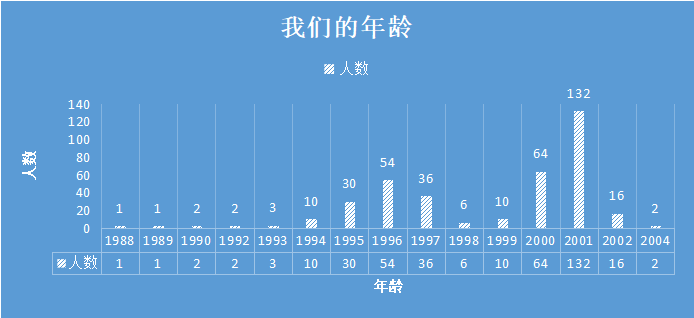 3、萌新年龄:虽然大家同一年入学,但年龄差距也是不小,在这一届萌新中,年龄最长的生于1988年,而最小的生于2004年,只相差16岁哟。但是我们依旧是萌新是同学,今年萌新“01”后成为2019级萌新主力军。