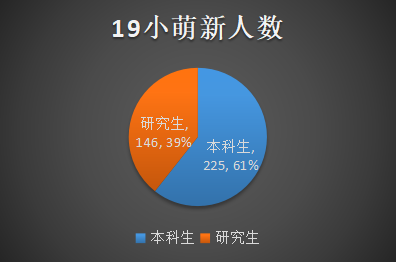 2、萌新本科生与研究生:现在带大家正在揭秘的是本科生、研究生的比例,通过数据分析我院依旧以本科生为主导,本科生比例占60.65%,研究生比例占39.35%,具体人数本科生225人 研究生:146人。