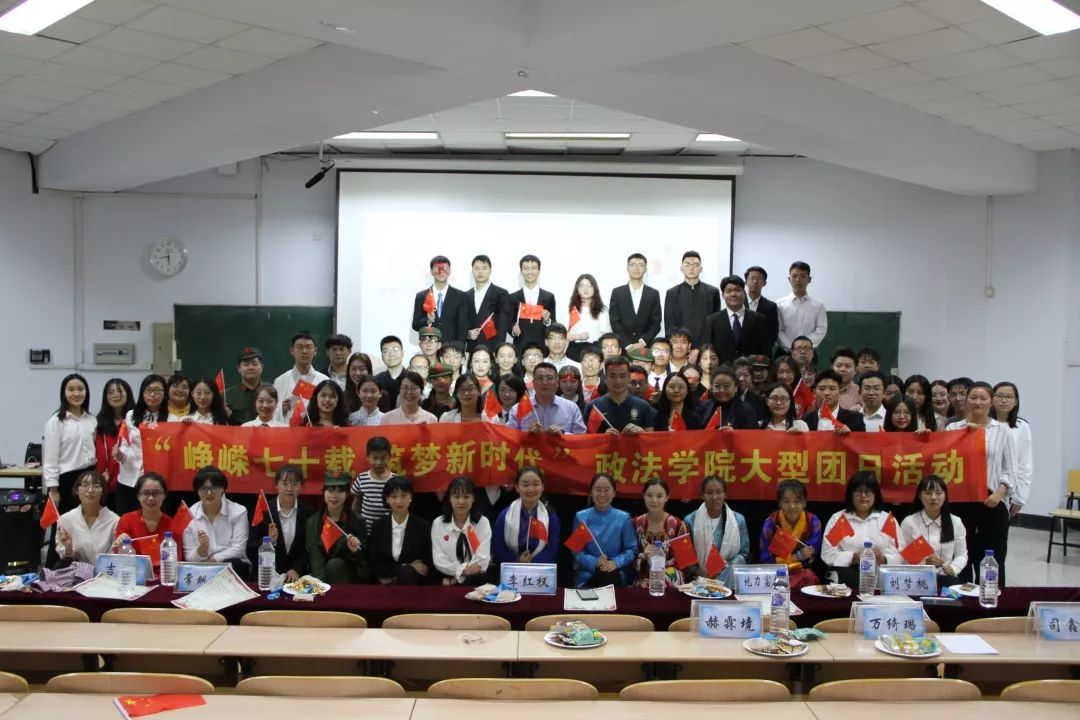2019年9月27日下午16:00,2019年政法学院大型主题团日活动拉开帷幕。本次团日活动以“峥嵘七十载 筑梦新时代——庆祝中华人民共和国成立七十周年”为主题,以情景剧表演为主要形式,结合合唱、舞蹈、朗诵等多种形式,带领同学们回顾重大历史时刻,献礼中华人民共和国成立七十周年。