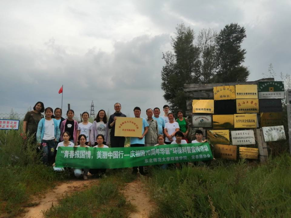 为贯彻落实党的十九大精神和习近平生态文明思想,积极倡导社会公众参与生态文明建设和环境保护,形成崇尚环保文明的社会氛围,东北师范大学环境学院科尔沁小队志愿者赴通榆(万平)沙地修复示范区开展“青春报国情,美丽中国行--庆中华人民共和国成立70周年”环保科普行活动,旨在中华人民共和国成立70周年之时发挥大学生群体的力量和智慧,共同履行环保责任,传承一份对生命、对环境、对祖国的爱,让美丽中国这一环保理念深入人心。