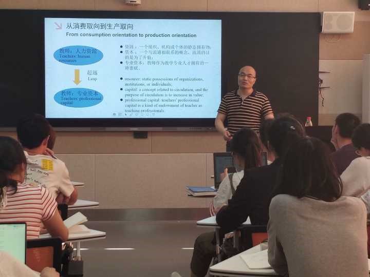 随后,老师从旧时代到新时代教育意义的改变、教师专业资本的定义以及如何运用和提升教师专业资本三个方面为我们进一步阐述了专业资本的重要性与影响力。整场讲座全长100分钟,在秦老师风趣而不失深度的语言魅力影响下,在座的老师同学们都全神贯注认真聆听,并进行内容记录。本次元晖论坛圆满举办,同学们都表示受益匪浅。