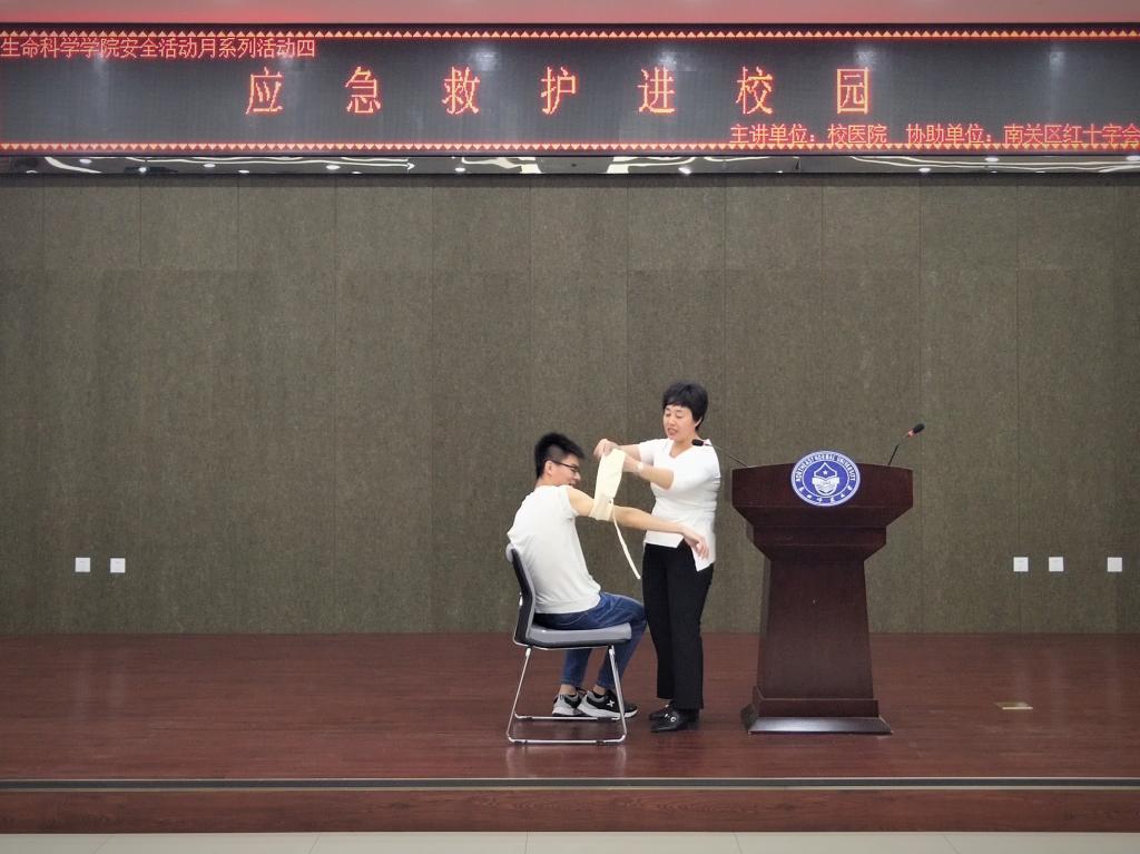 2019年6月4日,由东北师范大学生命科学学院主办的2019年春季安全活动月系列活动四“应急救护进校园”在就业指导中心厅一圆满结束。郭秀文医生,刘桂敏医生,以及生命科学学院副院长孟巍老师,董春光老师等嘉宾出席本次活动,2017级和2018级全体同学参加本次活动。