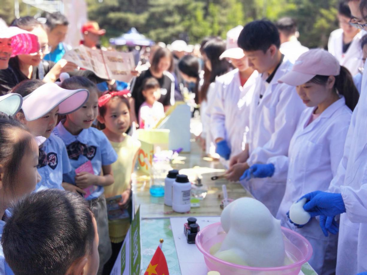 6月1日,化学学院参加了以“相约六一‘嗨翻天’长春慈善公益市集”为主题的吉林省慈善公益活动,在南湖公园为在场的中小学生普及科学知识,展示精心准备的化学小实验,带领小朋友们进入了多彩的化学世界。