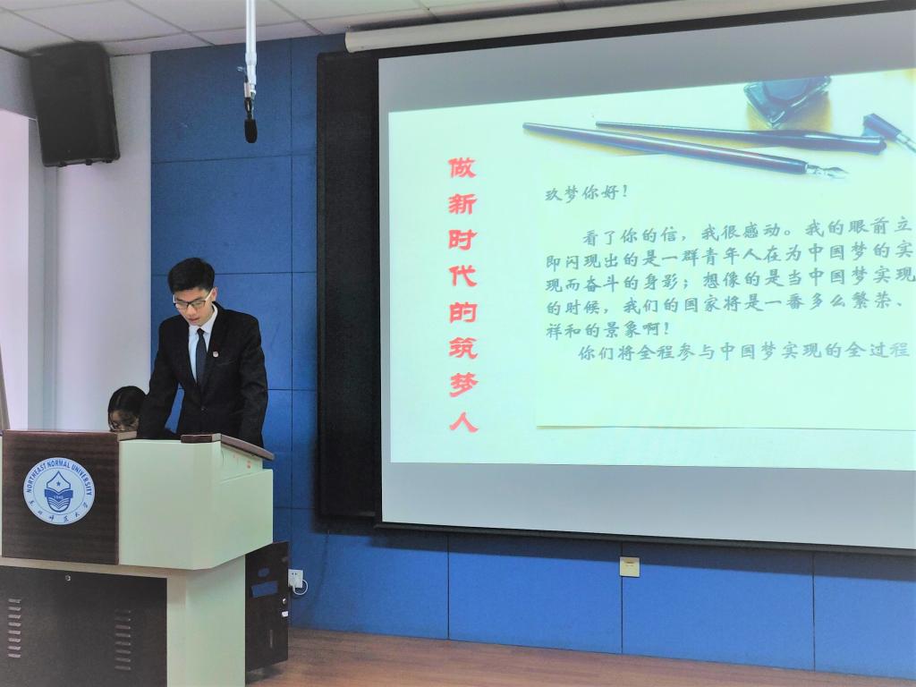 6月2日,5名同学在新时代大学生理论学习班与同学们分享了和曲老师面对面接触的感动和收获。首先,同学们观看了时代楷模发布厅的视频,大家都对曲老师的事迹感动不已。随后,四位同学分别分享了他们与曲老师的四次书信往来,曲老师感人至深的话语,让同学们更坚定了教书育人的信念,立志担负起时代的使命和责任,将个人的发展融入到实现中国梦之中。接着,连涛同学分享了曲老师的书籍并朗诵了节选片段,在座的同学们受益匪浅。曲老师充满力量的文字让同学们深受鼓舞与激励。最后,刘宝杰老师对本次理论学习做出了总结。老师说,曲老师的书信为我们充电加油,给我们注入正能量,希望每一位同学都可以向曲老师学习,坚定教育信念,传承师德师爱,我们一直在路上。