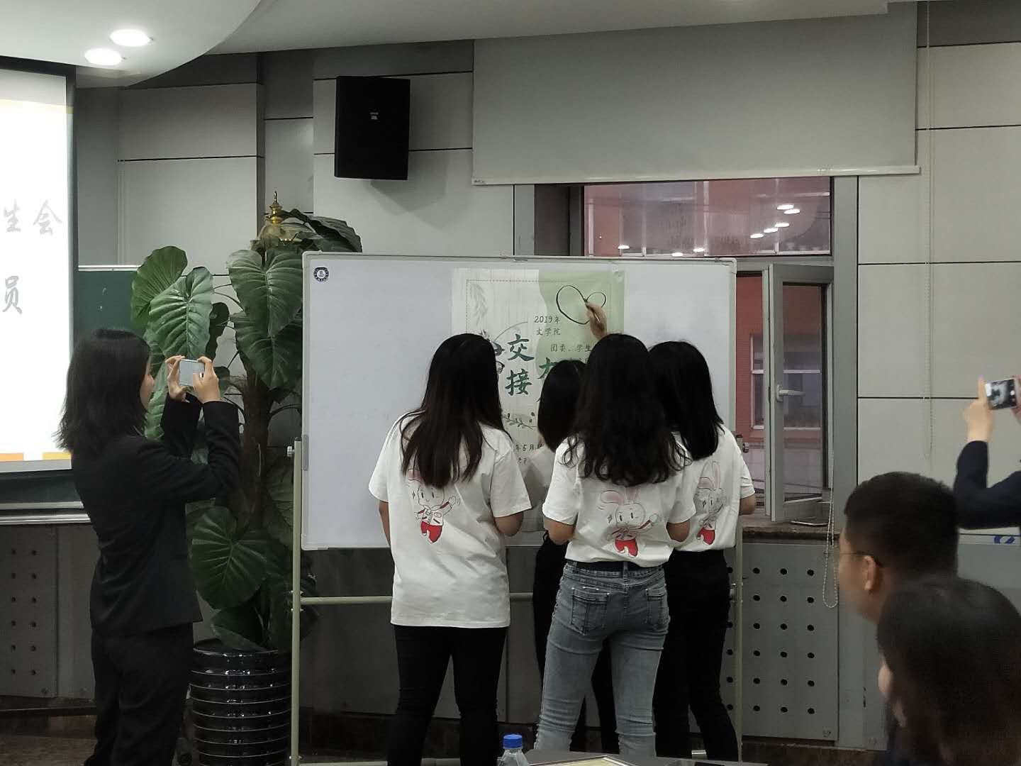 2019年5月18日下午17:30,2019年文学院团委、学生会主席团及部长级交接大会在文学院A210教室成功举办。