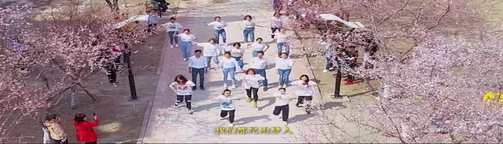 中午12时,快闪活动在工作人员的组织下正式开始。青年学生们佩戴团徽,身着白色上衣与牛仔裤运动鞋,出现在东北师范大学净月校区的每个角落,通过歌唱、舞蹈、乐器表演、手势舞表演等方式为全校师生上演了一场青春活力的视觉盛宴。桃花林下,学生手拉提琴,把对祖国最真切的祝福融入音符,乘风飞扬;旭日广场前,学生们共同跳起“我们都是追梦人”的手语操,用舞蹈致敬青春;图书馆旁,同学们手举国旗有序排列出东师的英文标志“NENU”,共颂青春赞歌。路过的行人纷纷驻足观看,为参演的学生们喝彩点赞。青春昂扬,活力四溢的东师青年学子,在歌声中构成了东师校园里一道靓丽的风景线。