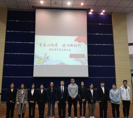 2019年4月28日晚六点半,“青春心向党,建功新时代”党务知识交流大会于外国语学院135报告厅成功举办。团委书记马成龙,17级辅导员曹天宇,第44届团委副书记曾鑫如,第44届团委秘书长孙明溪莅临了本次活动。