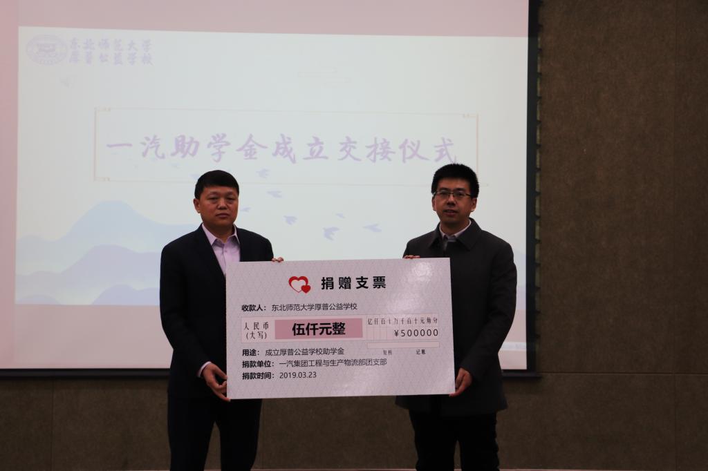 2019年3月23日上午九点,东北师范大学厚普公益学校十期春季学期开学典礼暨一汽助学金启动仪式在北苑B16拉开帷幕。长春市慈善会副秘书长张洪珠,长春慈善义工联盟秘书长刘海波,长春慈善联盟副主席苏航,吉林省志愿的士雷锋车队队长程龙贵,首约北京有限公司长春分公司对外加盟部经理,首约爱心车队长春支队负责人张静,长春市南昌社区党委副书记王亮,和一汽集团工程与生产物流部工艺技术处处长张晓胜,一汽集团青年志愿者协会执行会长付国栋,东北师范大学化学学院党委书记李鹏老师,东北师范大学党委副书记,副院长,厚普公益学校名誉校长杨雨龙老师以及厚普公益学校全体人员参与了本次活动。