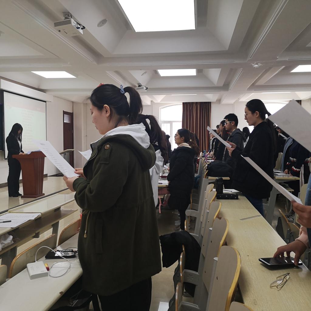 团校开学典礼的第一项,所有团校成员起立齐唱团歌;典礼第二项,由团委副书记赵子睿宣读团校开展的各项规章制度以及优秀学员的评比方法;第三项,团校学生代表王一涵同学发表感言,代表全体学员表达了对接下来团课的热切期望;第四项,团委书记赵梓名老师为第二期团校学生做寄语,并宣布此期团校正式开课。最后,活动以党委副书记朱春楠老师讲话结束,老师就此次团校活动对所有成员提出几点期望与要求,与同学们深入探讨入党的目的,并对同学们寄予真挚的祝福,希望同学们能在此次团校活动中严格要求自己,做到勤学、明辨、笃实,“仰望星空,脚踏实地”。