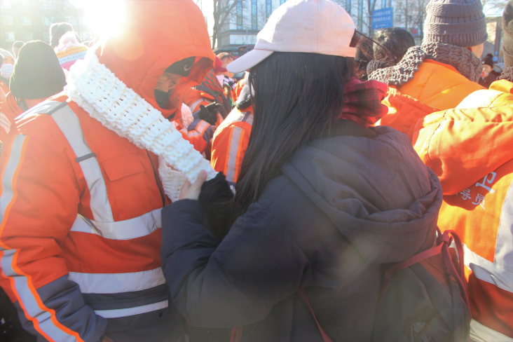 寒潮凶猛,但由于工作需要,他们仍坚守在户外岗位上,每天带着积极的生活态度工作十多小时,让同学们体会到即使生活不易,也要积极乐观地面对;人性的美比物质上的贵更值得敬佩;我们应张开臂膀拥抱社会,温暖彼此。