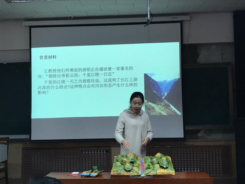 12月12日,由地理科学学院学生会学习部主办的第二届地理教具设计大赛决赛在地理科学学院四楼报告厅成功举办。本次比赛邀请到的嘉宾有地理科学学院党委书记王升忠老师、党委副书记副院长陈静老师、副院长人文地理与城乡规划系刘艳军老师、地理科学系系主任娄晓黎老师、地理信息科学系郭笑怡老师、团委书记沈雯老师和2018级辅导员张泽远老师。同时邀请了2018级一班全体同学作为模拟课堂学生和大众评审。