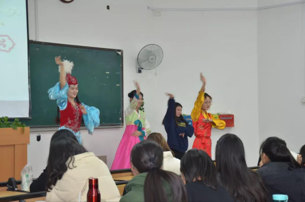 本次活动由藏族、蒙古族、白族、维吾尔族、朝鲜族、哈萨克族、土族、土家族、回族的九位少数民族同学带来的介绍以及歌舞和快问快答环节。