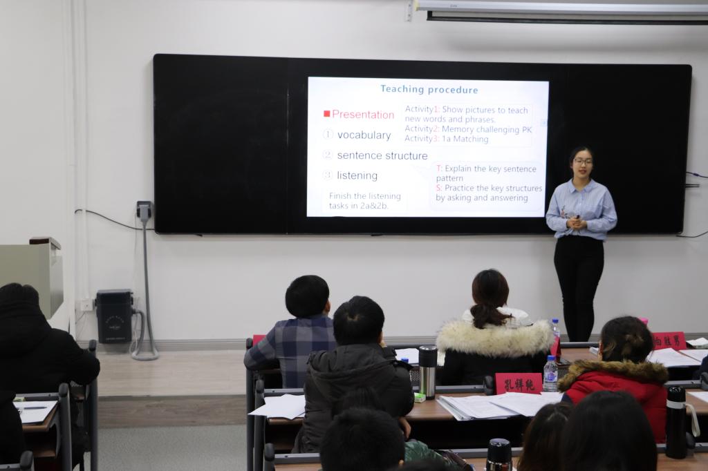 复赛正式开始,首先主持人介绍到场的各位评委老师,讲解比赛规则。随后进行上半场参赛教师的个人说课展示,中场由评委老师们就各专业要求、教师教态以及教案等对13位参赛教师说课进行点评。接着,下半场参赛教师进行个人说课展示。再由评委老师依次对下半场参赛教师进行点评。经评委老师慎重考虑,选出进入决赛的参赛教师:赵鹏飞、张腾腾、赵静雯、仲博文、刘丰、段维荣、陈旭、张思娴、陈昱、杜佳音。最后,由主持人对此次教师技能大赛进行总结,此次教师技能大赛复赛圆满落幕。