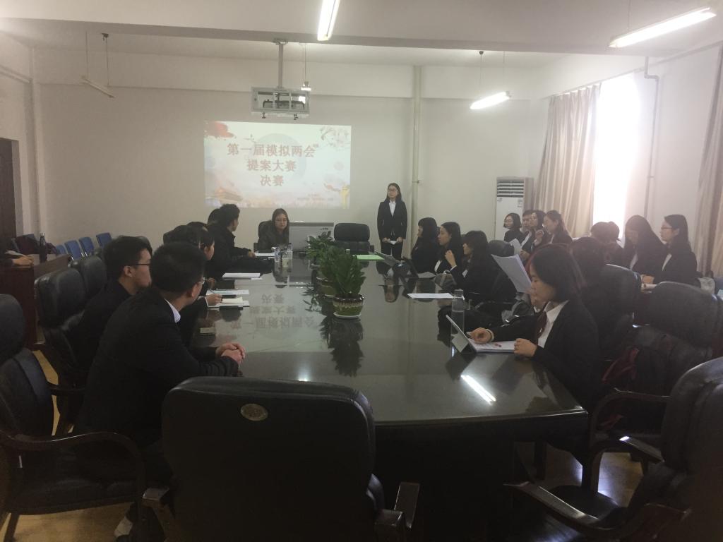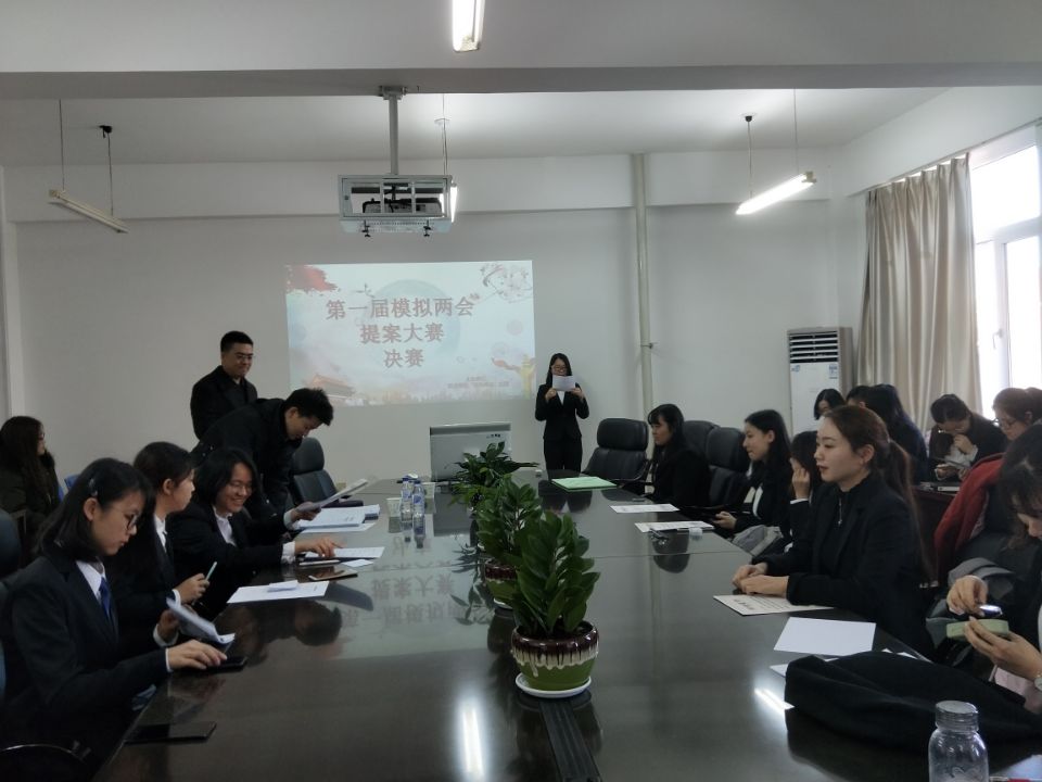 2018年11月21日,政法学院模拟两会第一届提案大赛决赛在三楼会议室举行,为模拟两会第一届提案大赛画上了圆满的句号。