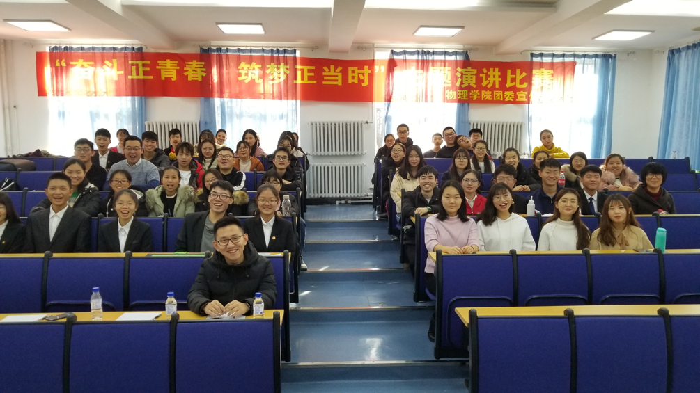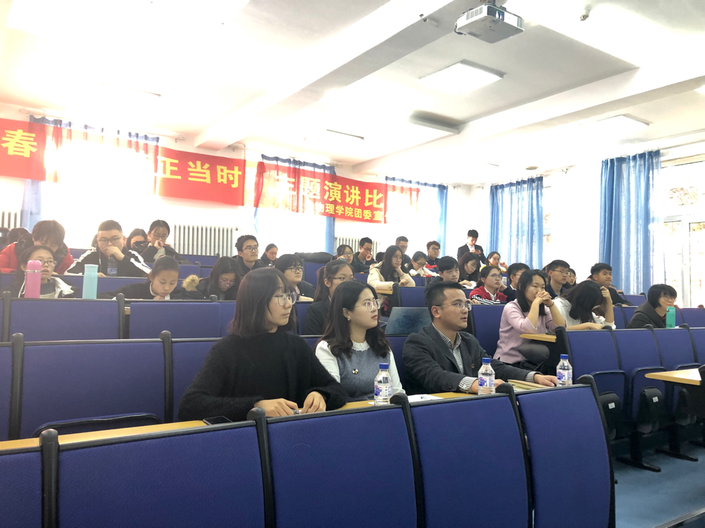 11月23日,由物理学院团委宣传部主办的“奋斗恰青春,筑梦正当时”主题演讲比赛在物院116教室圆满结束。本次活动邀请到了物理学院团委书记李金地老师,15级辅导员渠文洁老师,16级辅导员皮继鑫老师,17级辅导员徐晖老师担任评委。