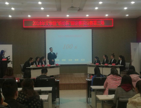 2018年11月5日,文学院“明伦杯”新生辩论赛积分赛第三场在北苑B16多功能活动厅落下帷幕。这标志经过五轮激烈的角逐,2018年东北师范大学文学院新生辩论赛圆满结束。