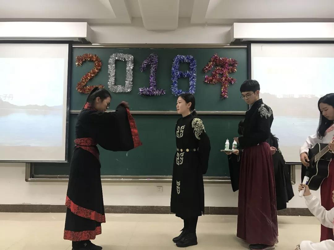 紧接着的是“班级风采展示”环节,思想政治教育班级,法学班级,政治学班级,行政管理班级依次上台进行了精彩的表演,赢得了台下的喝彩和掌声。