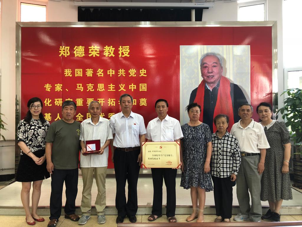 在庄重的《国际歌》奏响之后,党日活动进行到了最后一部分——全体党员参观“郑德荣同志先进迹展”,由吉喆老师担任讲解员,为到场的全体党员讲解郑德荣先生一生的成就。在参观到被先生所得的奖状、证书、著作所填满的展柜时,在场的各位无一不为先生走过的光辉历程所叹服。