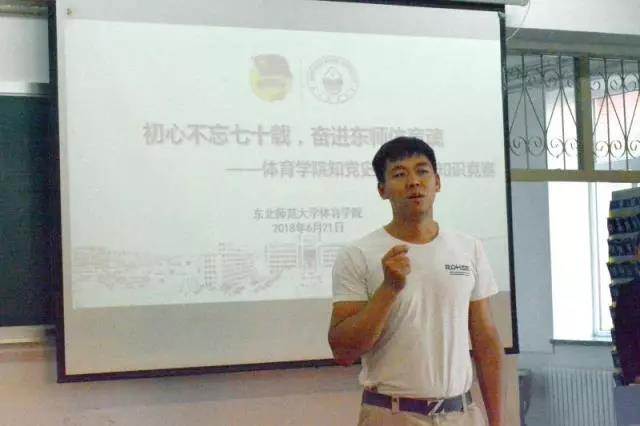 2018年6月21日下午,体育学院以“初心不忘七十载,奋进东师体育魂”为主题,在全院范围内开展“知党史明院情”知识竞赛活动。活动高举中国特色社会主义伟大旗帜,全面贯彻党的十九大精神,深入学习习近平新时代 中国特色社会主义思想,在马克思诞辰200周年及《共产党宣言》发表170周年的大背景下,以马克思列宁主义、毛泽东思想和中国特色社会主义理论体系为指导,通过主题知识竞赛,达到“知党史,明院情”的目的,迎接即将到来的“七十周年院庆”。用学生喜闻乐见的形式深入开展党史学习教育、爱国主义教育,明确学生新时代的历史使命,为全面建成小康社会、实现中华民族伟大复兴的中国梦努力奋斗。
