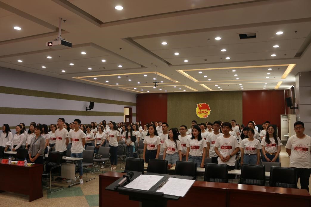 本次会议主要包括四项议程,第一项为全体团员集体佩戴团徽,第二项为重温入团誓词,第三项为共唱中国共青团团歌,第四项为团委书记讲话。