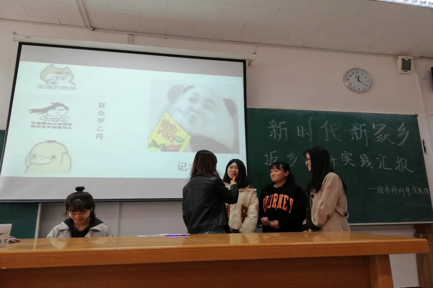 通过此次汇报会同学们真切的感觉到了新时代带给我们家乡的变化,更加珍惜现在的美好生活。同时,使同学们更深刻的体会到了团队合作所带来的事半功倍的工作效率,增强了同学之间的团队凝聚力,更能理解到团结的重要性。