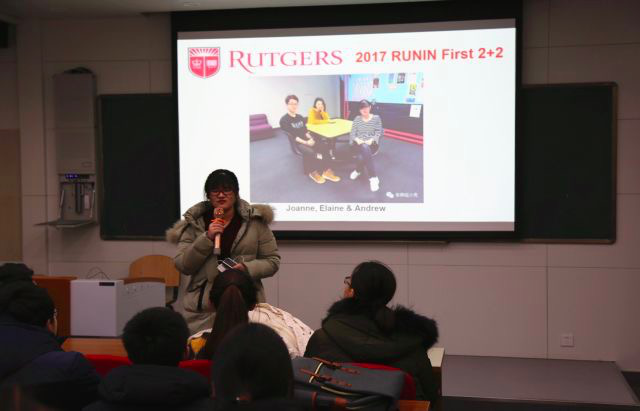 为进一步加强学生对罗格斯大学纽瓦克学院“2+2”项目的了解,由纽瓦克学院学生职业发展中心组织的“我的美国求学经历”主题讲座交流会成功举办。近100名纽瓦克学院2015级和2016级学生参加了本次活动。纽瓦克学院美方院长张永维、办公室主任徐一渌以及外籍教师夏洛特·米歇尔·斯科特出席了活动。本次活动由纽瓦克学院团委书记兼学生职业发展中心主任常飒飒主持。