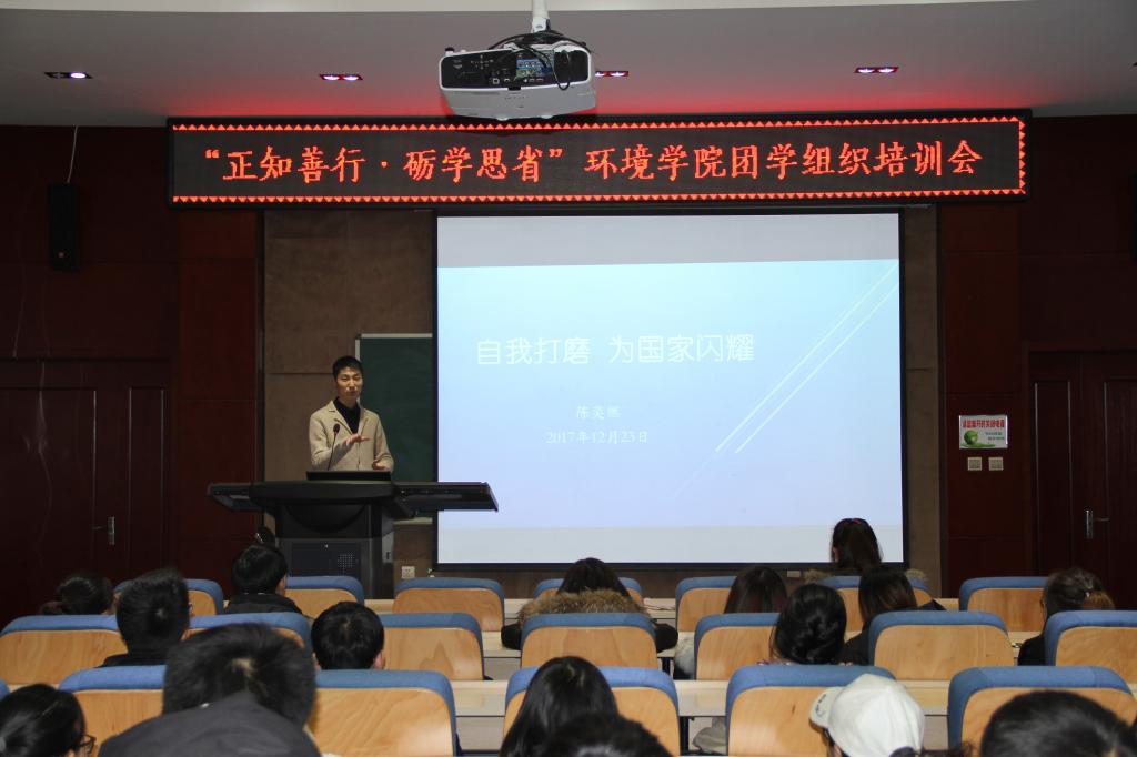 2017年12月23日下午15:30在环境学院216召开的“正知善行,励学思省”环境学院团学组织培训会圆满结束。本次培训会,我们荣幸邀请了东北师范大学学生会主席陈奕燃学长为我们带来精彩的演讲与分享。
