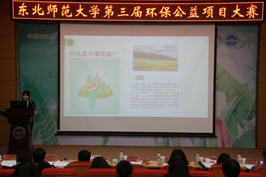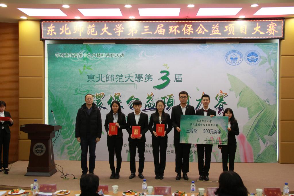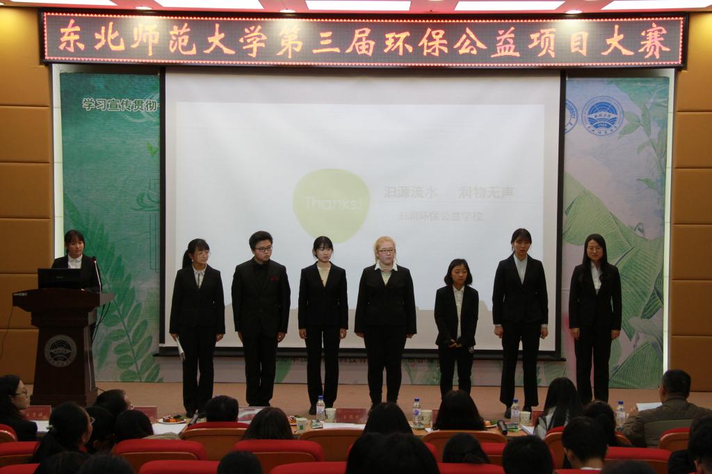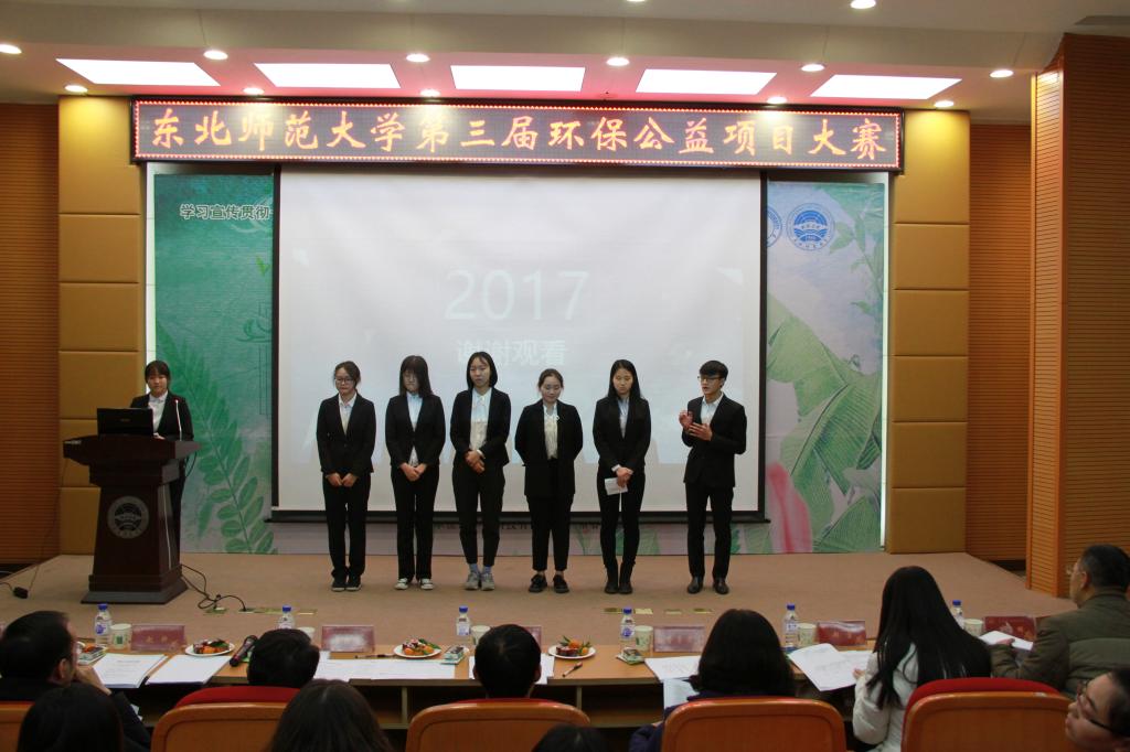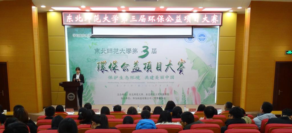 12月2日,由东北师范大学和东北师范大学环境学院主办、东北师范大学常春藤协会协办的第三届环保公益项目大赛决赛于环境学院203报告厅成功举办,现场评委有校团委科研实践部部长郑雪老师、环境学院院长王德利教授、环境学院党委书记霍洪亮教授、环境学院曹勇宏教授、环境学院唐占辉副教授、环境学院党委副书记赵轩老师、环境学院团委书记王隽媛老师。本次比赛赛获得了全校学生的热烈响应。