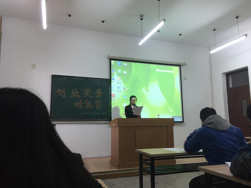 2017年11月10日中午11:40,由商学院蓝海工作室主办的“创业实务对抗赛”初赛在商学院103教室成功举行。本次活动得到了同学们的积极响应。本次比赛有幸邀请到商学院的田巍老师和刘金星老师担当评委,共计六组人次参加了本次比赛。