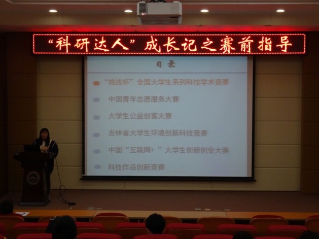 在第一部分当中,给大家分别介绍了“挑战杯”全国大学生系列科技学术竞赛、中国青年志愿服务大赛、大学生公益创客大赛、吉林省大学生环境创新科技竞赛、中国“互联网+ ”大学生创新创业大赛、科技作品创新竞赛的申报具体内容和注意事项,并介绍了历年来学院优秀的学长学姐们的获奖项目。