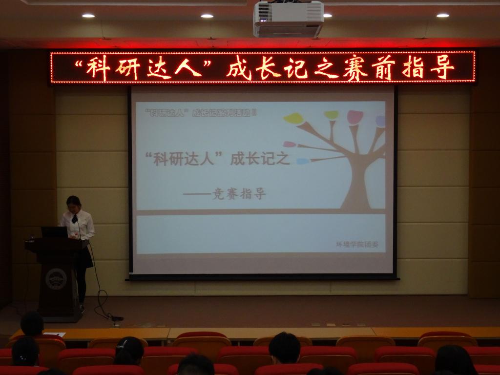11月9日下午19:30分,由环境学院团委科研部主办的“科研达人”成长记之竞赛指导活动于环境学院203报告厅成功举办。经过一年的时间,大家的项目也逐渐接近了尾声,每个小组都取得了或多或少的成果,所以我们特此举办此次活动,希望大家可以更好的运用自己辛勤付出的项目,积极参与到之后的比赛中来。