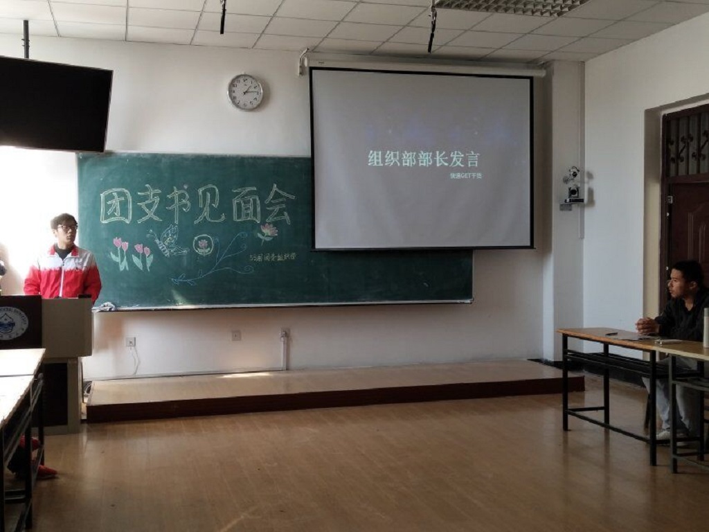 图为数学与统计学院第53届团支书见面会团委组织部部长发言