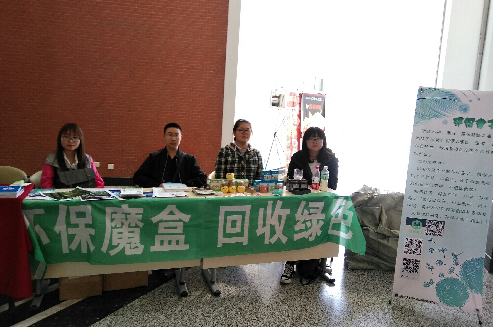9月25日上午,由中国地质大学学生团体发起,携手东北师范大学绿色动力环保志愿者协会开展的环保盒子活动正式开始。此活动在北苑食堂进行为期三天的摆台宣传,及为期2个月的上门回收,并得到了领导的关注以及同学们的积极参与。