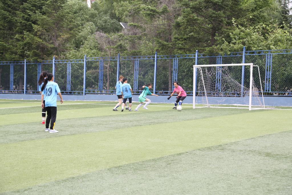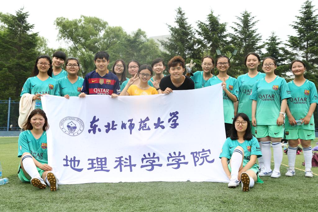 6月18日中午,由东北师范大学公共体育教研室主办的女子足球四强赛在足球场顺利举行。比赛得到了全校同学的热烈反响和积极参与。本场比赛为地理科学学院对抗外国语学院。