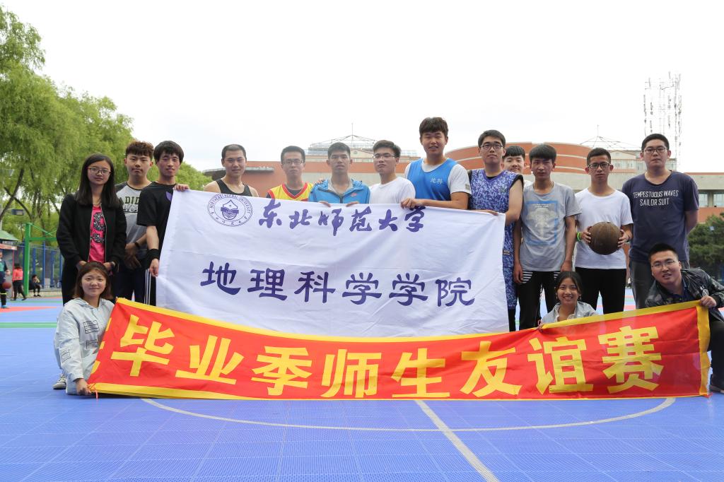 6月2日中午,由地理科学学院学生会体育部主办的“毕业季送老篮球赛”在篮球场顺利举行。本次比赛是大四学长与其它年级同学的友谊赛。比赛得到了地科同学们的热烈反响和积极参与。