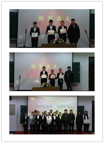 百丈飞瀑震撼心灵,曼声高亢,其各有千秋。从精心创作、准备参赛作品到反复进行的修改、定稿,再到现场富有激情的演讲朗诵,最终共有6名选手从初赛的严格筛选中脱颖而出,进入决赛。决赛现场,各位选手表现镇定从容,用优美的嗓音和高昂的情绪,将自己对一二·九运动的深刻认识和对伟大祖国的深深爱意化作一首首赞歌,感染着在场的每一位老师和同学。其中谢霖同学以《纪念一二·九 青春进行时》进行了生动激昂的演讲,表达了自己对一二·九运动中各位先辈们的崇高敬意及对伟大祖国的热爱之情,荣获此次比赛的一等奖。2015级图书班全体同学对《青春中国》的精彩朗诵,表达了新一代青年对国家的美好未来的憧憬和向往,并荣获二等奖,齐航同学以对《我的祖国》声情并茂的朗诵荣获三等奖。王超、蒙立昊、杨菁等同学荣获优秀奖。在精彩的演讲朗诵后,老师和同学们共同观看了《负担起民族危亡-“一二·九运动”》一二·九运动纪念短片,从而对一二·九运动有了更深入的了解,也对我们自身的责任和使命有了进一步的认识。此后进行的是颁奖仪式,2015级辅导员王煜淇老师为获得优秀奖的选手颁发证书,我院团委书记支航老师为荣获一、二、三等奖的选手颁发证书。获奖名单如表一所示。本次比赛在掌声和欢呼声中圆满结束!