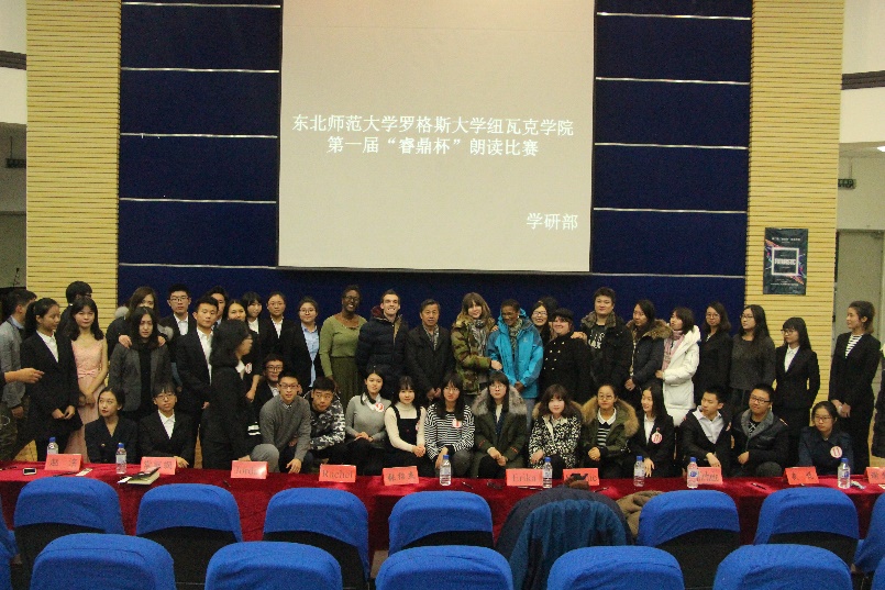 12月1日晚17点30分,由纽瓦克学院学研部主办的第一届“锐鼎杯”朗读比赛,在外国语学院135教室成功举行。出席本次比赛的评委及嘉宾有张绍杰院长,常飒飒老师,赵洺老师,我院外籍教师,以及净月校区各学院学生组织的主席。