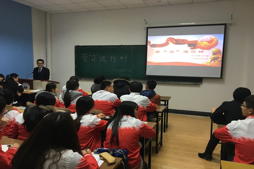 11月27日18:00,由数学与统计学院党总支理论学习部主办的“学‘习’进行时”理论学习活动在数学与统计学院108教室成功举行。参与本次理论学习活动的有党总支学生副书记陈泽、秘书处秘书长林怡辰、宣传部部长赵春晓、理论学习部全体成员以及2015级重点发展对象和第二批入党积极分子。