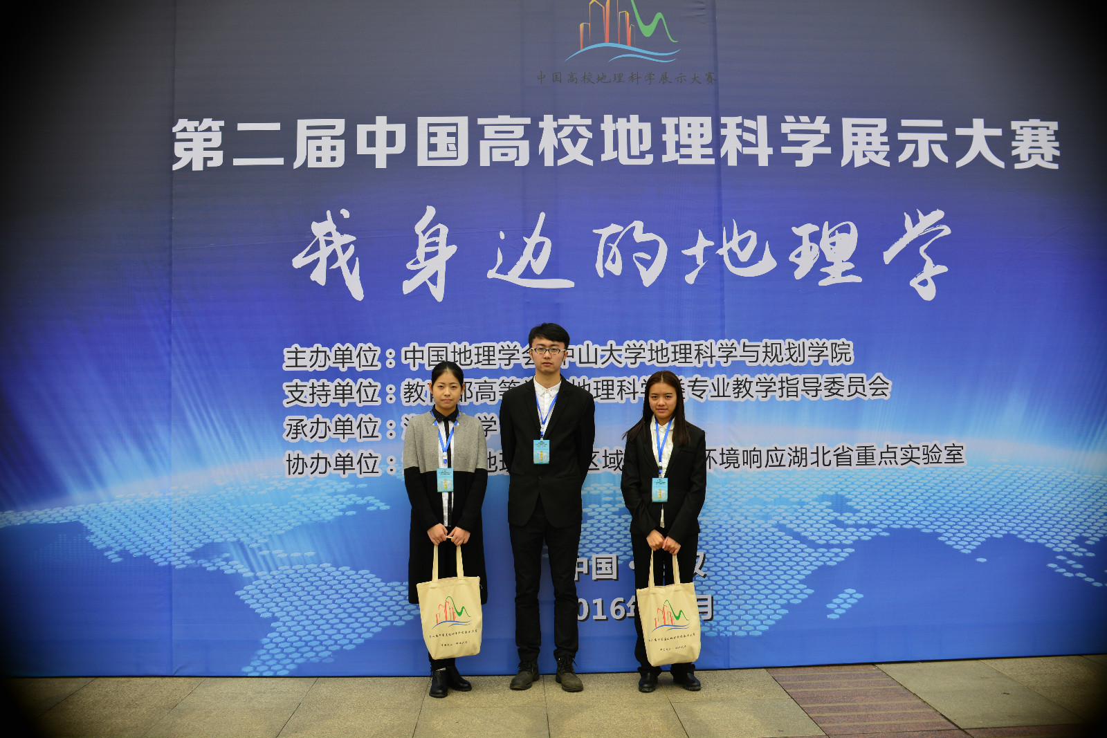 11月18日-20日,第二届中国高校地理科学展示大赛决赛在湖北大学成功举办。我院派出由2013级本科生熊志飞、牛彩澄及2014级本科生党琴、李宇婷、王晓楠组成的、指导教师为魏冶、王昱的参赛队,获得了本次比赛人文组优胜奖。