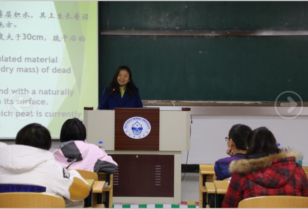 首先,王忠强老师以水土污染与你我为主题,从污染物的定义、污染物的产生、污染物消减路径进行了详细的介绍,使同学们深刻地认识到了保护环境的重要性。接下来老师又分享了他的有关科研经历和科研成果,让同学们明白到环境治理在你我。接着赵红艳老师以北温带泥炭沼泽为主题,介绍了什么是泥炭沼泽,并引出了地球上最重要的生态系统,说明了泥炭沼泽的重要性。接着又介绍了泥炭沼泽的分布,讲述了她的科研历程及研究内容,鼓励同学们多走,多看,多交流,立足脚下,放眼世界。两位老师的讲授赢得了同学们的阵阵掌声。