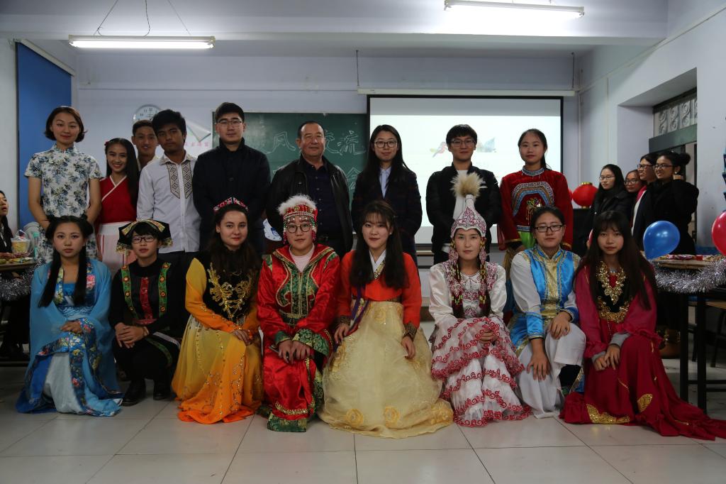 下午6点钟,才艺展示会正式开始。首先由各个不同民族同学穿着自己的民族服饰进行风采展示,现场欢呼声不断。风采展示过后,各民族的同学代表接受主持人采访,向观众们介绍了自己的民族特色和民族文化。接着少数民族以及汉族同学们给大家带来了精彩的歌舞表演,他们悠扬悦耳的歌声和唯美动人的舞蹈将活动推至了高潮。同时,主持人还在节目表演的间隔中穿插了趣味横生的小游戏以及抽奖环节,现场一片欢声笑语。在活动尾声,张婧宁老师以及帕老师分别进行了总结发言。最后由嘉宾评出了本次才艺展示会的两位风采之星,获奖演员均获得了精美的礼品。