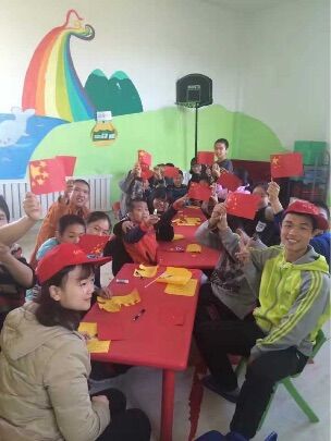 活动第一项:学校负责人带领志愿者们参观训练中心,并为大家展示由自闭症儿童制作的手工皂及陶瓷制品。活动第二项:志愿者带领自闭症儿童制作手工小国旗,培养自闭症儿童的爱国意识。活动第三项:自闭症儿童为大家进行才艺表演。