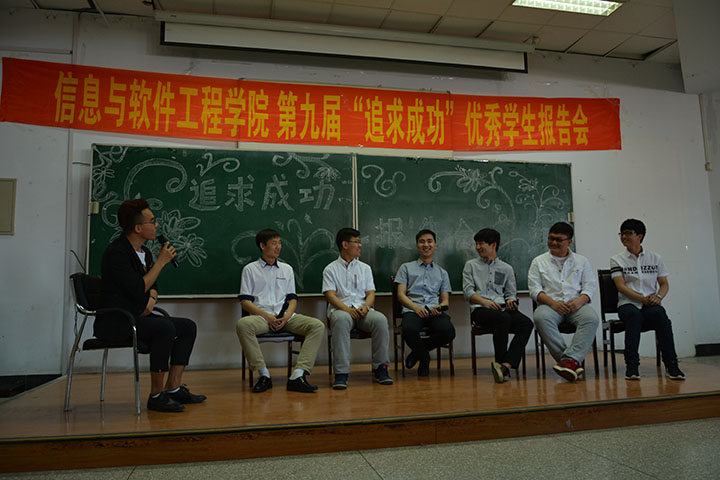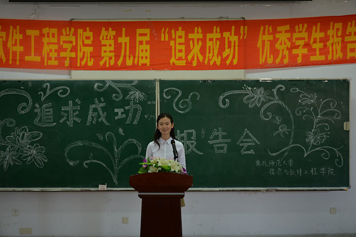 6月3日上午八时,信息与软件工程学院在三阶举办了第九届“追求成功”优秀学生报告会。莅临本次报告会的嘉宾有学院党委副书记兼副院长滕继波老师、教学副院长郑晓娟教授、实践教学副院长潘伟教授、院团委书记李勍老师、校团委办公室主任高旭君老师(2012级第一任辅导员)以及于游、李文焱、吴琼等各年级辅导员老师。此外还有吉林教育电视台的记者对本场报告会进行宣传报道。