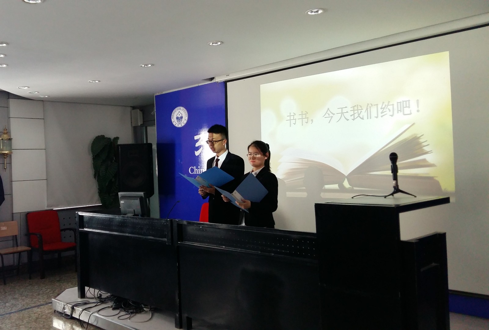 4月27日下午,由文学院团委主办的读书节系列活动之“书书,我们约吧!”在文学院A210教室顺利举行。本次活动得到了领导的关注以及同学们的踊跃参与。本次活动的主讲人是于文夫老师以及孙洛丹老师。