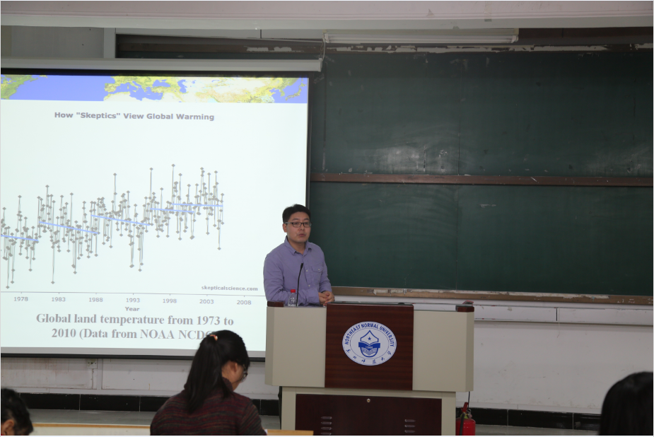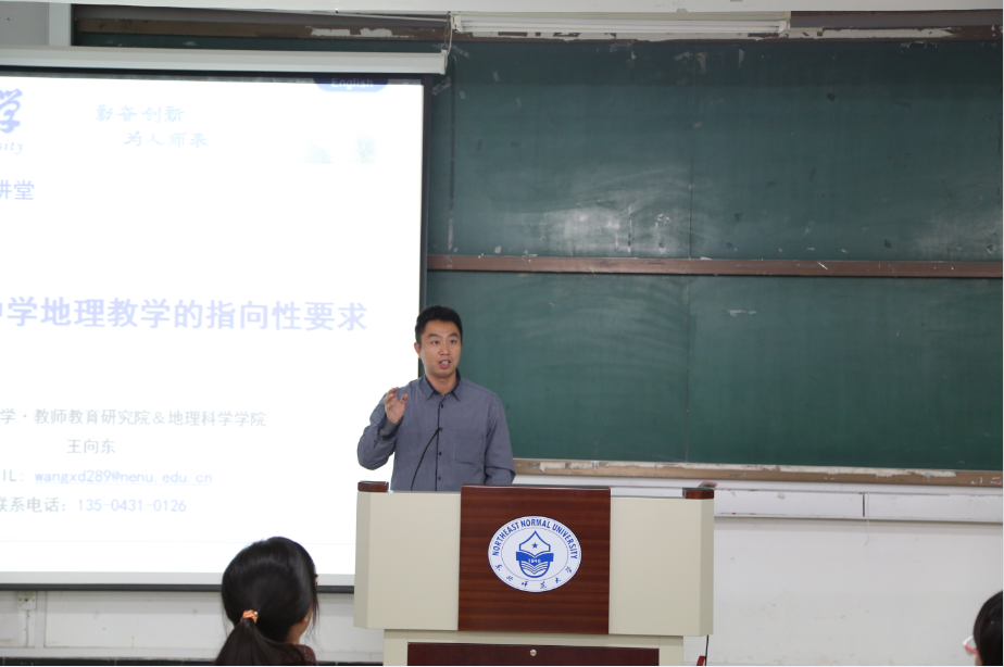 首先,郭蒙老师以“森林火灾与大气C循环”为主题,向同学们介绍了“温室效应”一词的由来,详细讲解了海洋在C循环中的作用、森林如何参与C循环以及如何利用卫星监测温室气体的含量等方面的知识,还以感冒为例,向同学们解释了森林火灾是把双刃剑的原因——那就是森林火灾虽然会对人类财产造成一定损失,但从整体来讲对自然却是具有一定的益处。接着,王向东老师以“国际视野下中学地理教学的指向性要求”为主题,图文并茂地展示了美国课堂与中国课堂的区别,王老师用幽默的话语介绍了美国的初高中课堂教学方式,提出了对美国中学教育观察的思考,使得同学们对地理教学产生了浓厚的兴趣,让同学们更加深刻地了解到美国教育与中国教育的差别,同时也认识到21世纪培养学生自主学习能力的重要性。最后,王老师表示欢迎同学们课下与他共同探讨讲座中提到的问题。