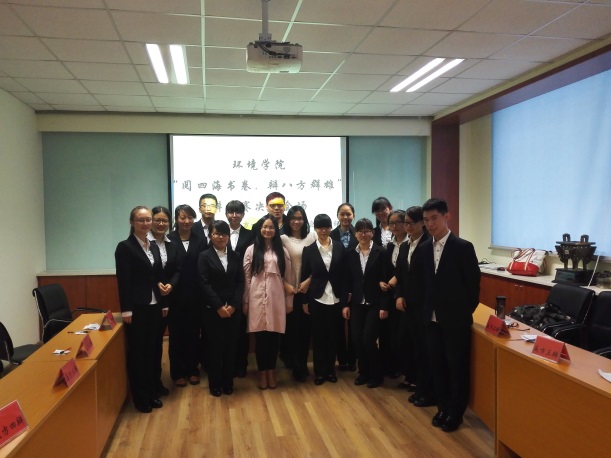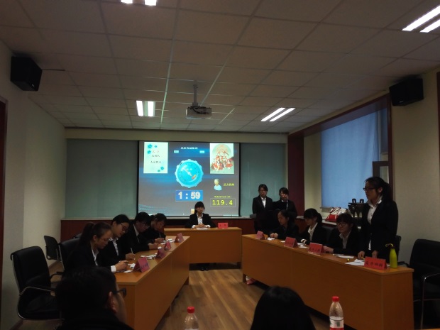 决赛的现场就更为激烈了。11月14日早9:30,辩论赛决赛在环境学院404会议室顺利举行。大二年级组成的正方“无绝队”和由大一年级组成的反方“四爷队”就人与自然的关系是“人定胜天”还是“人制于天”展开了激烈的交锋。辩论中,辩论双方充分发挥自己的智慧和团结协作能力,就各自的观点展开辩论,旁征博引,唇枪舌剑,侃侃而谈,赢得了台下观众的阵阵掌声。在这淋漓尽致的演绎中,我们感受到的不仅是辩手们妙语连珠中思索人生的智慧,唇枪舌战中不凡的气度,更是他们激扬青春的风采。最后,“无绝队”以优异的表现获得最终的胜利。