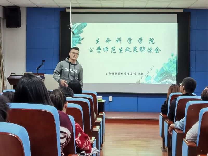 2020年10月9日晚上19时30分,为了更有效地帮助公费师范生们全面、系统地了解公费师范生政策,由生命科学学院第27届学生会学研部承办的“公费师范生政策解读会”在生命科学学院六楼报告厅拉开帷幕。会议特意邀请了刘宝杰老师为生命科学学院2019级及2020级生物科学公费师范专业的本科生同学答疑解惑。2019级本科生辅导员赵睿老师、2020级本科生辅导员霍奎先老师以及第27届学生会主席团成员作为嘉宾受邀莅临活动现场。