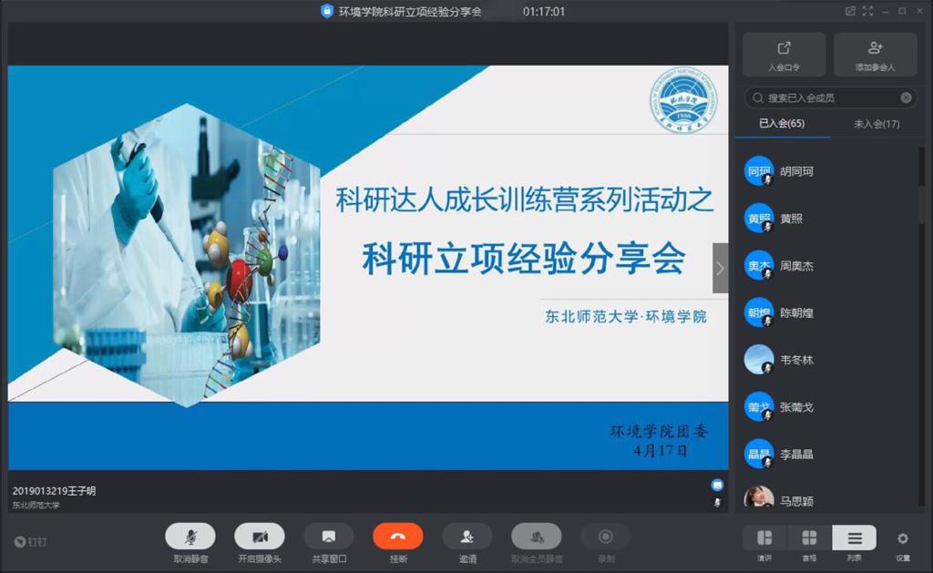 由于疫情的原因,虽返校日期未定,但学院的科研工作却不等人,大一的同学们渴望加入科研团队,大二同学们的科研项目进度仍需推进,此情此境,为解答同学们在科学研究和专利申请过程中遇到的种种疑惑与困难,环境学院团委科研部于2020年4月17日举办“科研达人成长训练营”之科研立项经验分享会,本次活动,我们邀请到了环境学院2017级环境科学专业的陈朝煌学长和2017级生态学专业的谢思绮学姐向大家分享科研立项和专利申请的相关经验。